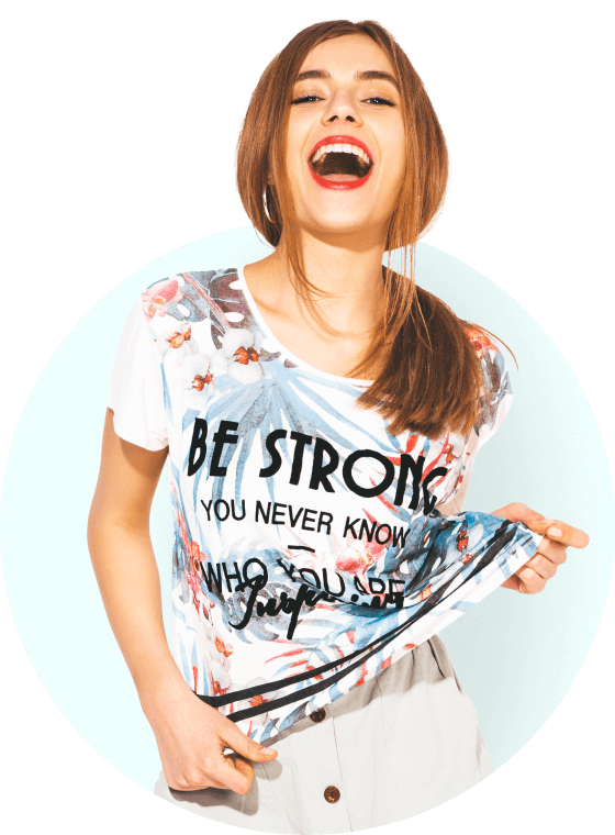 To design your own T-shirt, you can upload your design to the front of your tee and add custom elements like text. For some of our T-shirts, reverse side printing is also available.
